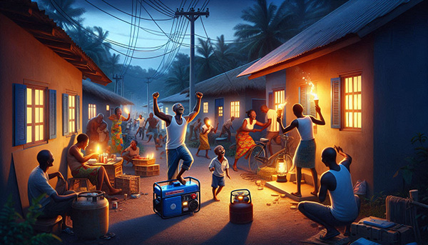 Cheers erupt like Ghana won the World Cup. For electricity.